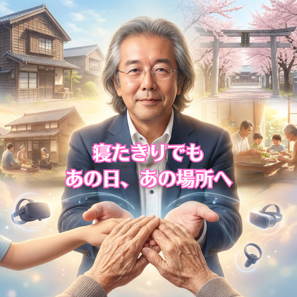 一方で、人生100年時代と言われる超高齢化社会は既に始まっていて、少子化の加速とともに、社会全体が「誰もが高齢者」の時代になりつつあります。肉体的な自由はどうしても歳を取るごとに少なくなってきますが、ロボット開発だけに期待して、目の前の生活をおざなりにしている気がしていました。高齢者施設でのレクリエーションに塗り絵や折り紙を毎日のようにやっている様子は、その典型的な例だと感じていました。それを簡単に変えることで、高齢者の日々の生活に潤いや楽しさを取り戻し、生活自体がまだまだ豊かにできると思っています。その道具が「実写VRによる瞬間移動体験」です。